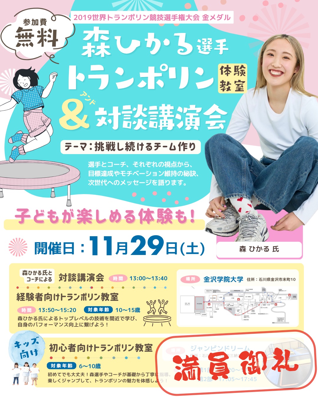 【満員御礼🙇♀️】🏅\金メダリストから学ぶ!✨講演会&トランポリン体験教室/🏅