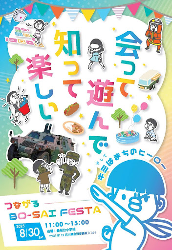 本事業は、地域コミュニティの互助・共助力を高めることを目的として、長坂台校下を中心に地域住民が参加できる防災交流イベント「つながるBO-SAI FESTA」を開催しました。