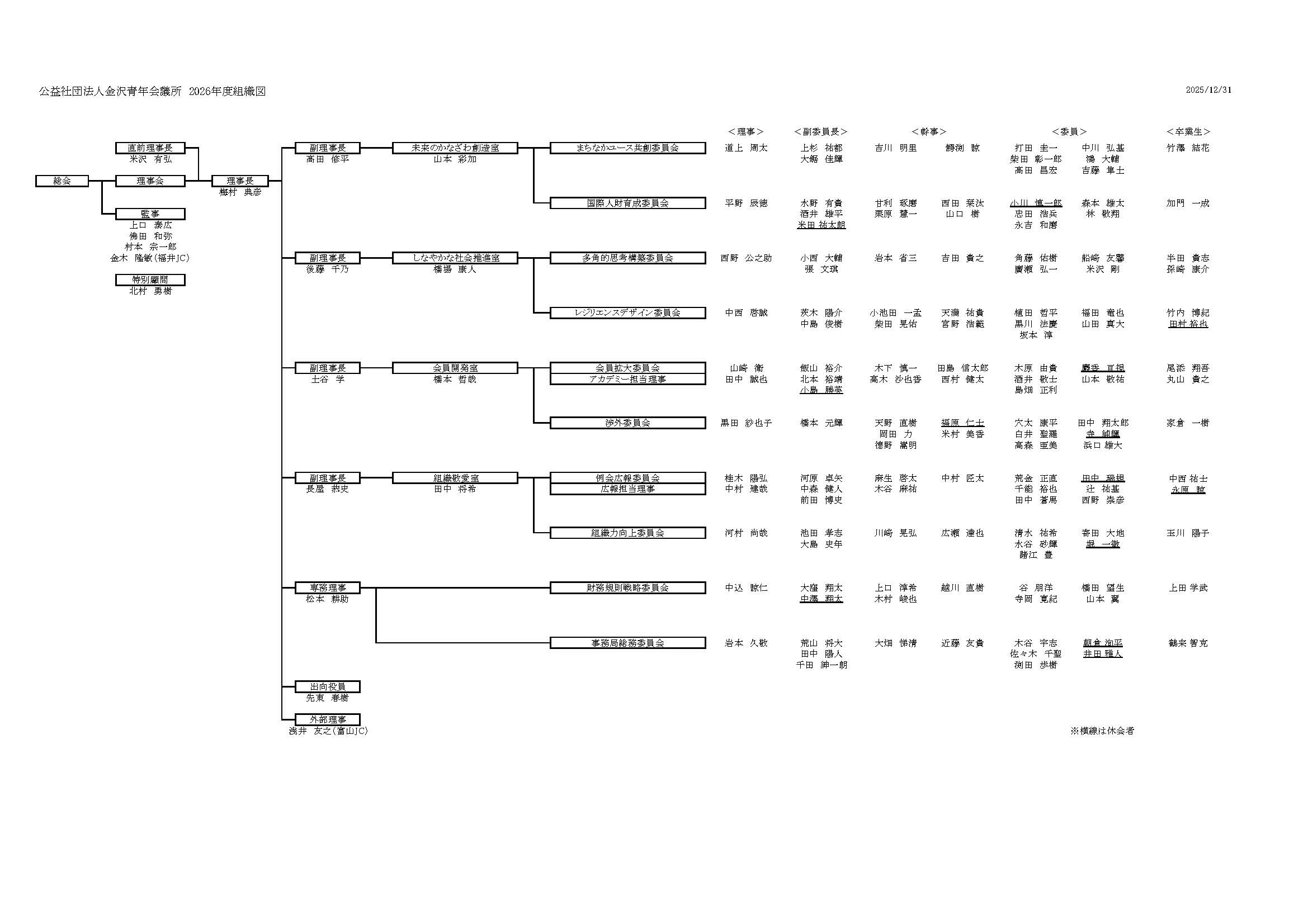 金沢青年会議所がまちの未来へ挑戦し続けるため、活動の基盤となる財源の確保や、健全な財務運営と法令遵守を徹底し、各委員会が安心して事業に打ち込める環境作りをサポートします。 また単なる審査機関ではなく、事業構築の段階から共に最善策を考える「伴走者」として事業を支え、メンバーの成長と金沢のまちの発展に貢献してまいります。